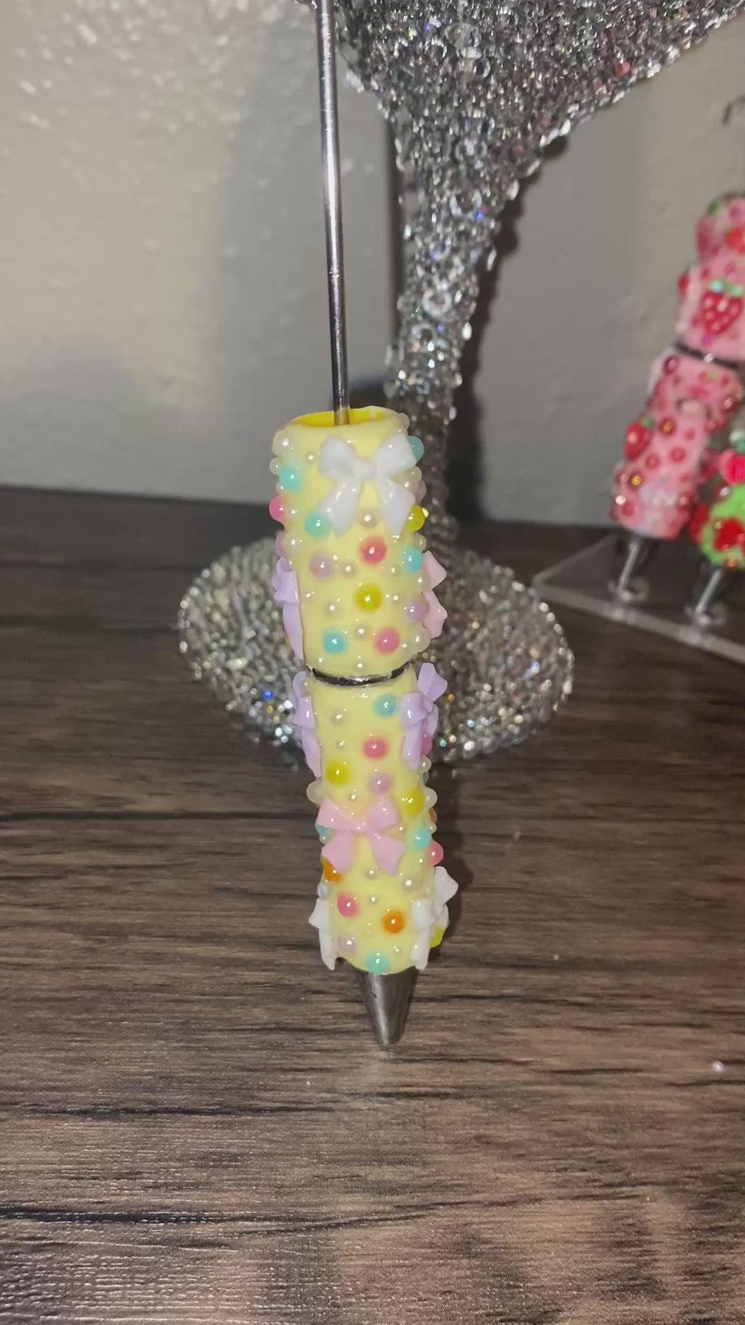 • Clay beadable pens decorated with charms, resin pieces, 3-D pieces, small, embellishments, rhinestones etc